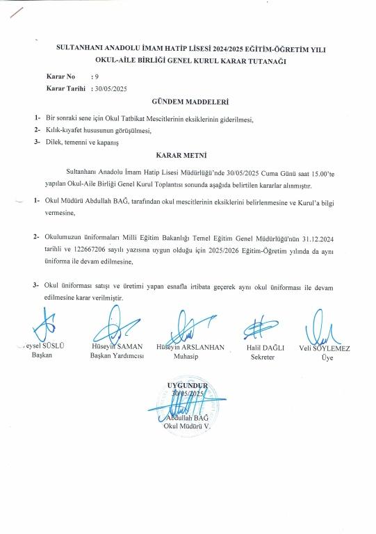 Milli Eğitim Bakanlığına Bağlı Okul Öğrencilerinin Kılık ve Kıyafetlerine Dair Yönetmelikte Değişiklik Yapılması Hakkında Yönetmeliğin 3. Maddesine istinaden Okul Aile Birliğinin ve Öğretmenler Kurulu’nun almış olduğu karar doğrultusunda öğrencilerimizin giyeceği forma şekilleri aşağıdaki resimlerde görüldüğü gibidir. Okul formasında ve renklerde herhangi bir değişikliğe gidilmemiştir.